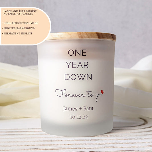 One Year Down, Forever to Go: Personalized Anniversary Candle Gift for him or her